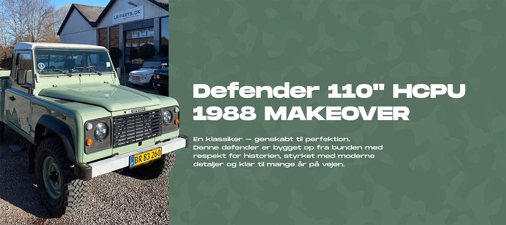 Klassikeren bygget til fremtidenRobust, tidløs og kompromisløs. Denne Defender 110" HCPU fra 1988 er ikke bare en bil – det er et ikon, genskabt med respekt for historien og styrket til fremtidens eventyr. HCPU – når kapacitet betyder altHCPU står for High Capacity Pick Up. Modellen er udstyret med separat førerhus og et kraftigere lad, der giver højere lasteevne end en standard pickup. En arbejdsbil i sin reneste form – bygget til at tage mere, holde længere og klare de tungeste opgaver. Den klassiske 2,5 D motorUnder hjelmen ligger den legendariske 2,5 NA dieselmotor (Naturally Aspirated). Uden turbolader, men med uendelig pålidelighed. Motoren var i fremragende stand, så i stedet for en fuld renovering er den gennemgået, serviceret og opdateret med nye dele, hvor det var nødvendigt. Simpelt, effektivt og tro mod originalen. En klassiker – genskabt til perfektion. En klassiker – genskabt til perfektion. En klassiker – genskabt til perfektion. En klassiker – genskabt til perfektion. En klassiker – genskabt til perfektion. En klassiker – genskabt til perfektion. En klassiker – genskabt til perfektion. En klassiker – genskabt til perfektion. Nyt fundament – stærkere end nogensinde