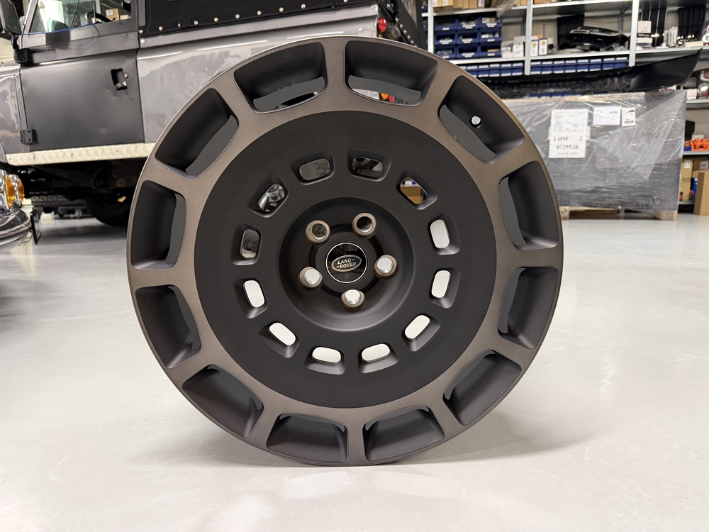 Land Rover Defender L663 OCTA fælg i den mørktonede Black Edition fælg (på nogle af billederne afbilledet i den blanke OCTA fælg) giver med de mørk tonede kanter et endnu mere råt udseende til Defender'en.