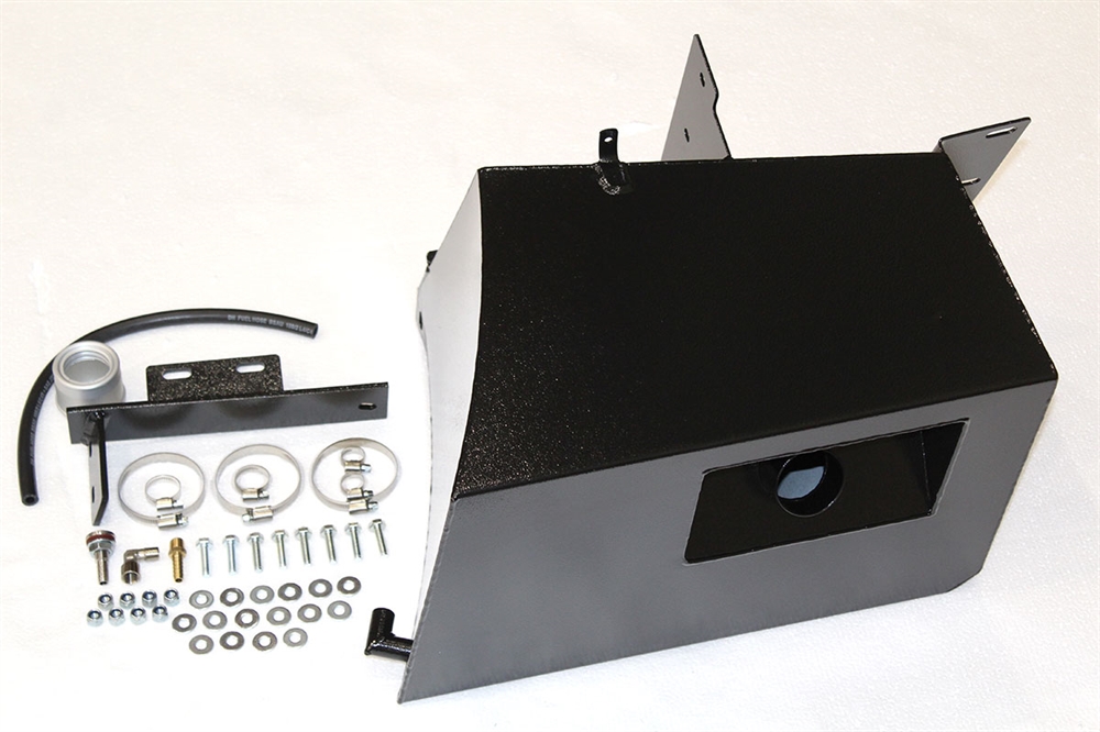 Land Rover extra brændstof tank for 110" Defender Td5 samt Td4 - Monteres i venstre bagskærm og forøger derved brændstofbeholdningen med 48 liter uden at det går ud over bilens frihøjde. Brændstof tanken er fremstillet i 2 mm pulverlakeret stål. Tanken fungerer som en gennemstrømnings tank, og er dermed monteret imellem den normale tankpåfyldning og bilens normale brændstof tank. Kræver ingen ekstra tankmåler eller pumpe. Leveres komplet med montage sæt.