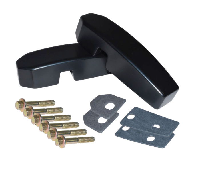 Land Rover kit med forrude beslag til defender i sort eloxeret aluminium. Sæt med beslag der holder forrude ramme og bulkhead sammen