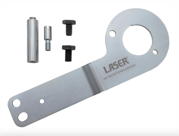 Land Rover krumtap låseværktøj. Et special designet værktøj so holder krumtappen i sin timede position fra bagsiden af motoren, når man arbejder med knastaksel kæder og andre komponenter placeret samme sted.