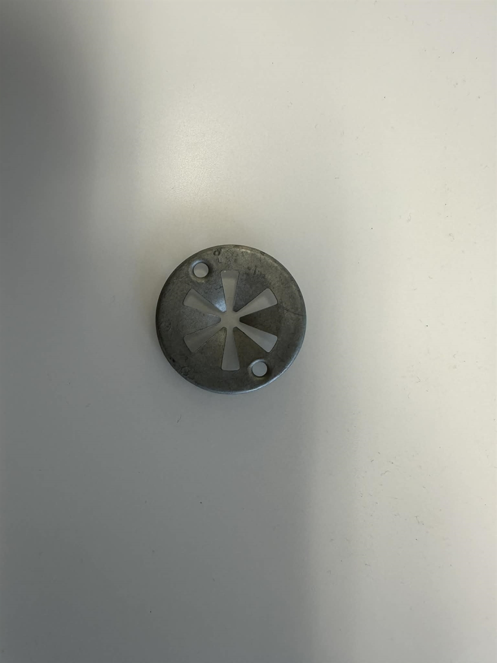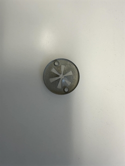 Land Rover låseskive med lidt større "hul", til montage af udstødnings-varmeskjold. Midten af skiven giver sig når den påsættes - på denne måde kan den nemt påføres og således holde varmeskjoldet på plads. 30 mm i diameter.