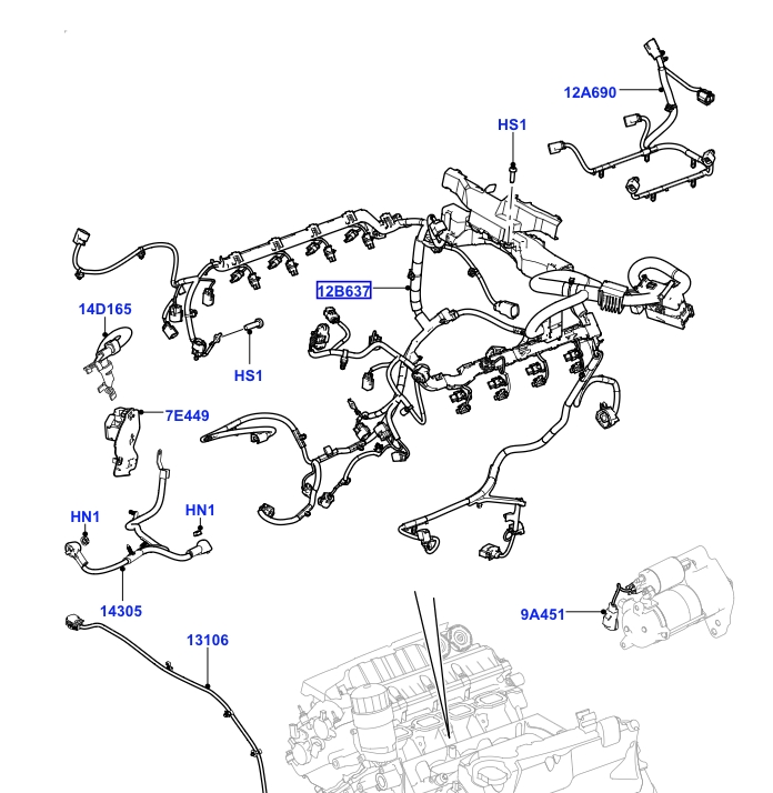 Land Rover ledningsnet til 5.0 V8 benzin motoren. Denne version er med start/stop. Passende til Range Rover fra 2013 og Range Rover Sport fra 2014.